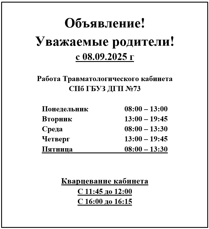 | ДГП № 73 | пн.-пт. | 8:00 — 20:00 | ||