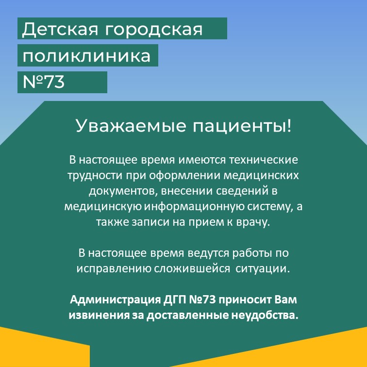Санкт-Петербургское государственное бюджетное учреждение здравоохранения «Детская городская поликлиника № 73» — государственное учреждение, работающее в соответствии с Территориальной программой государственных гарантий бесплатного оказания гражданам медицинской помощи.